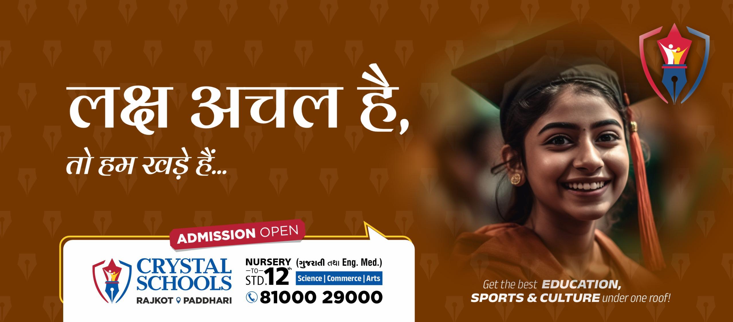Crystal schools-rajkot, where our educational success can be demonstrated not only in the field of academic mark sheet but also in child's career. From the year 2008, we have not only acquired the best result in board exams but also have achieved many national & international awards. ministry of human resources of India has awarded 'national siksharatna award' for our educational system & achievements.